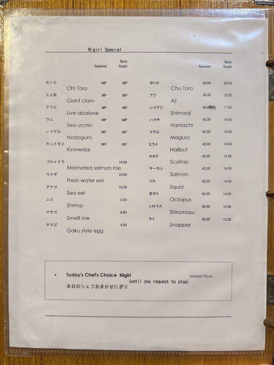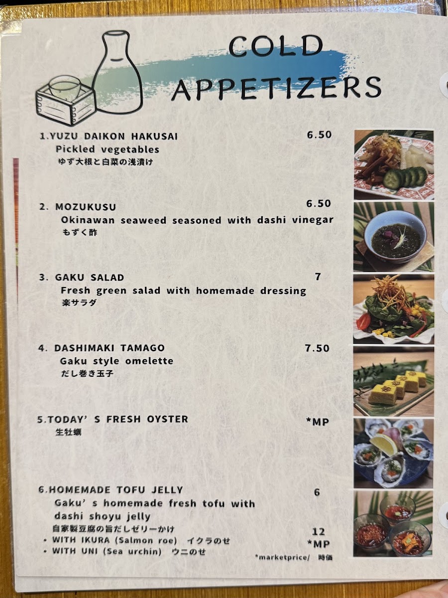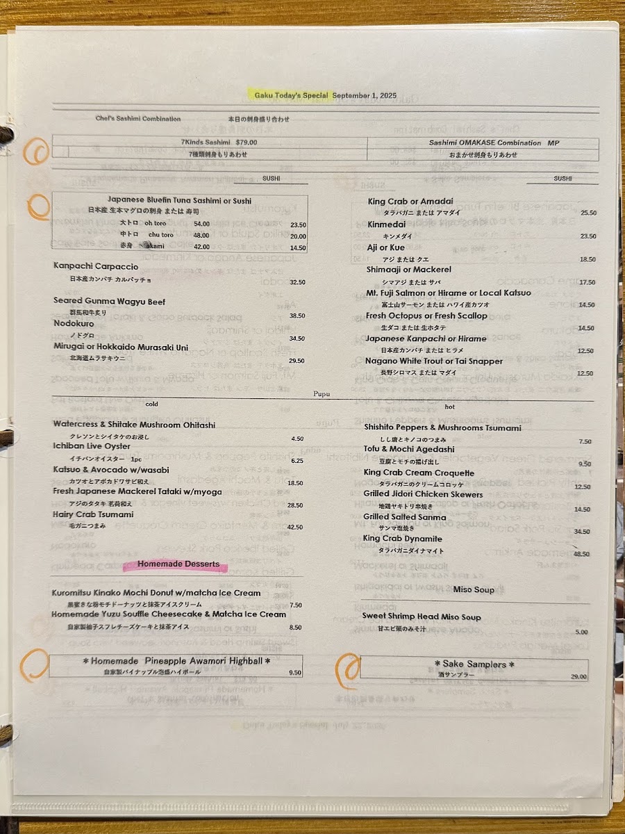 Sushi Izakaya Gaku Menu